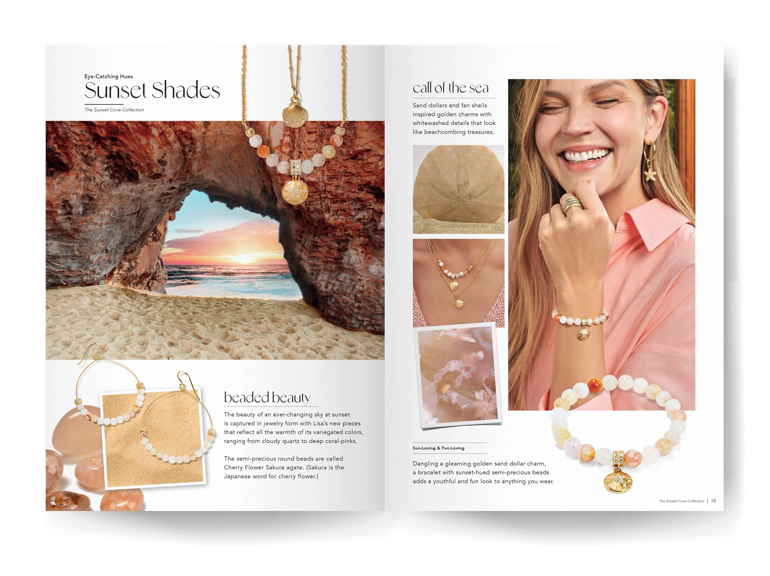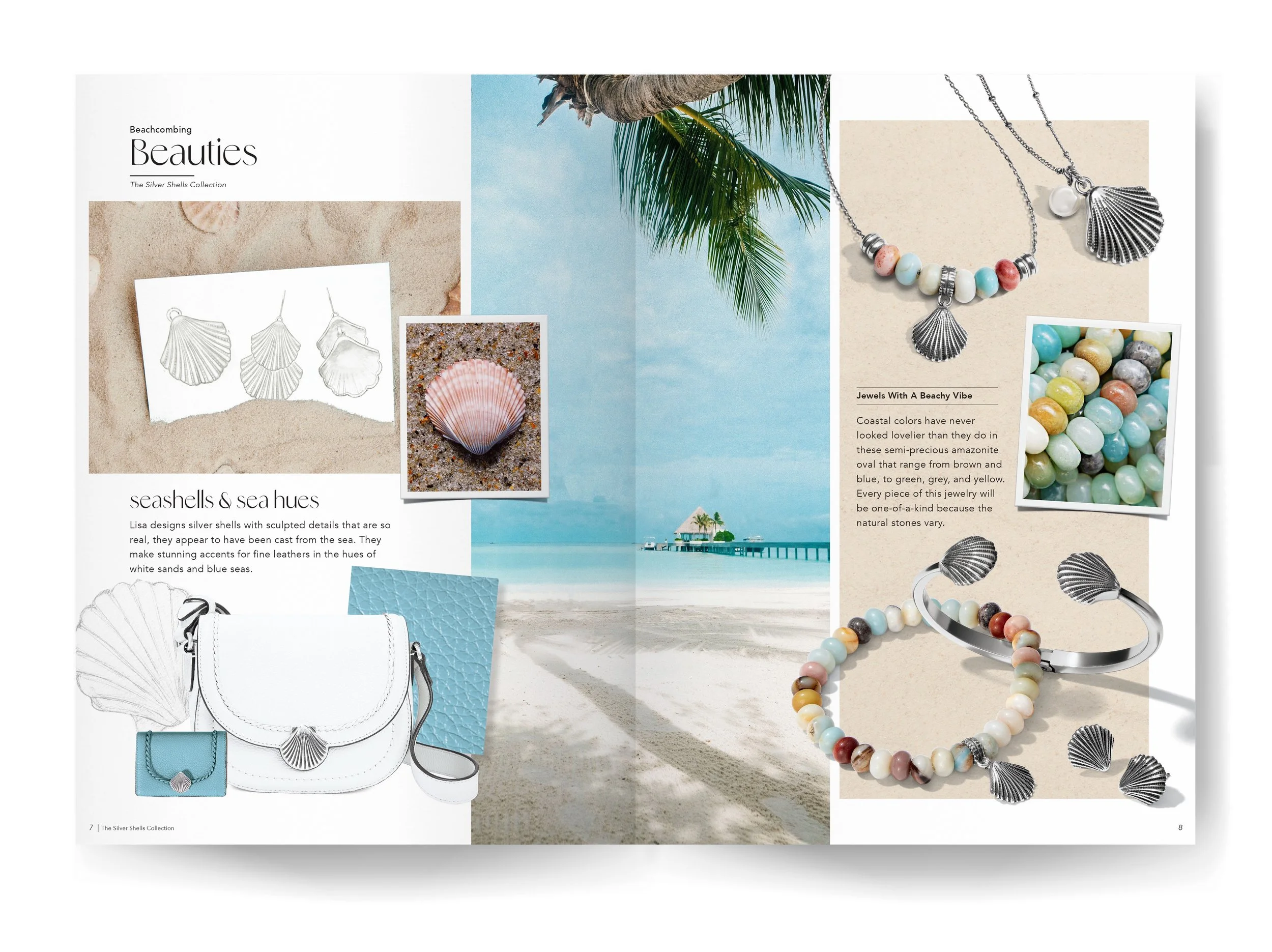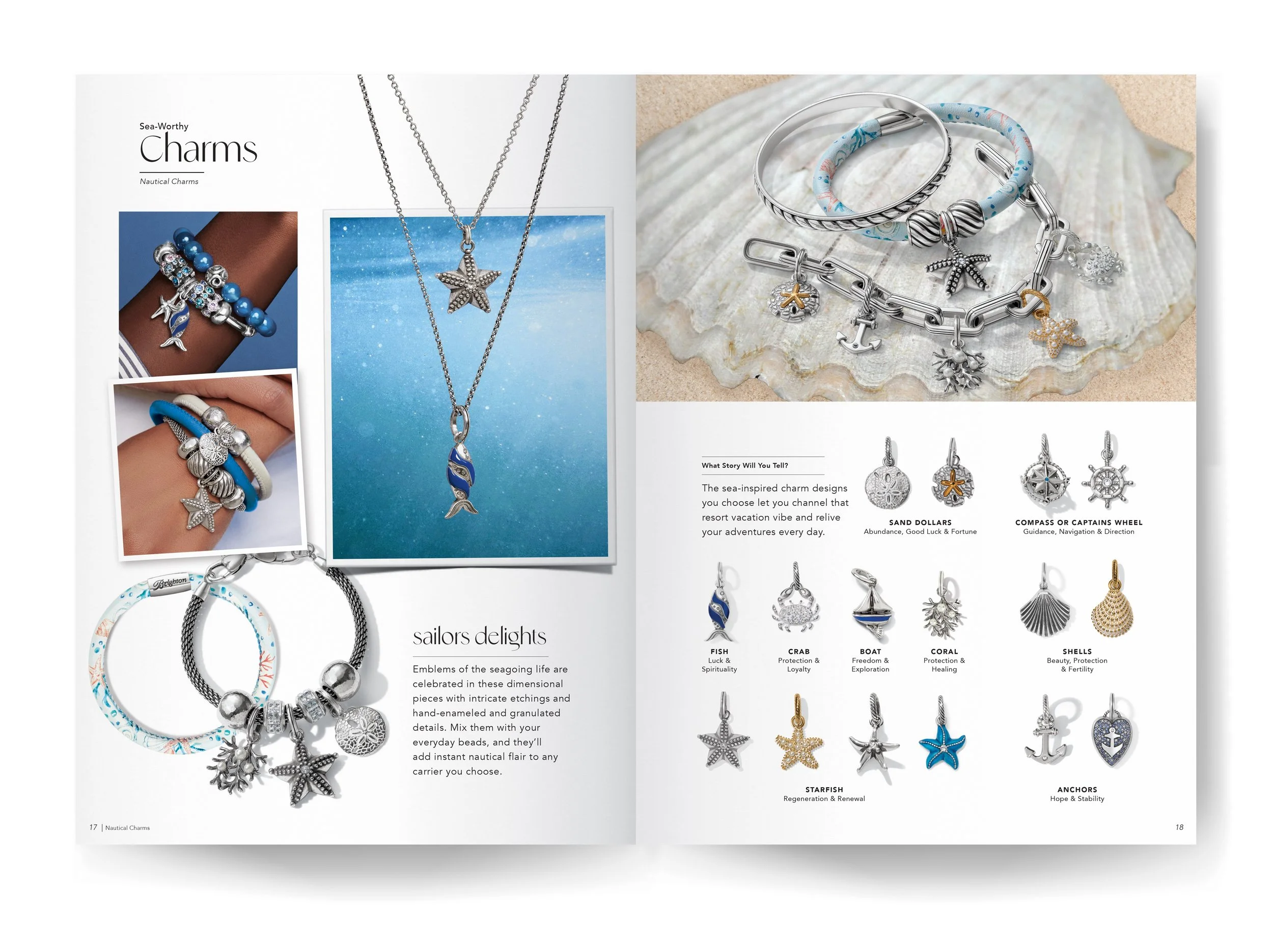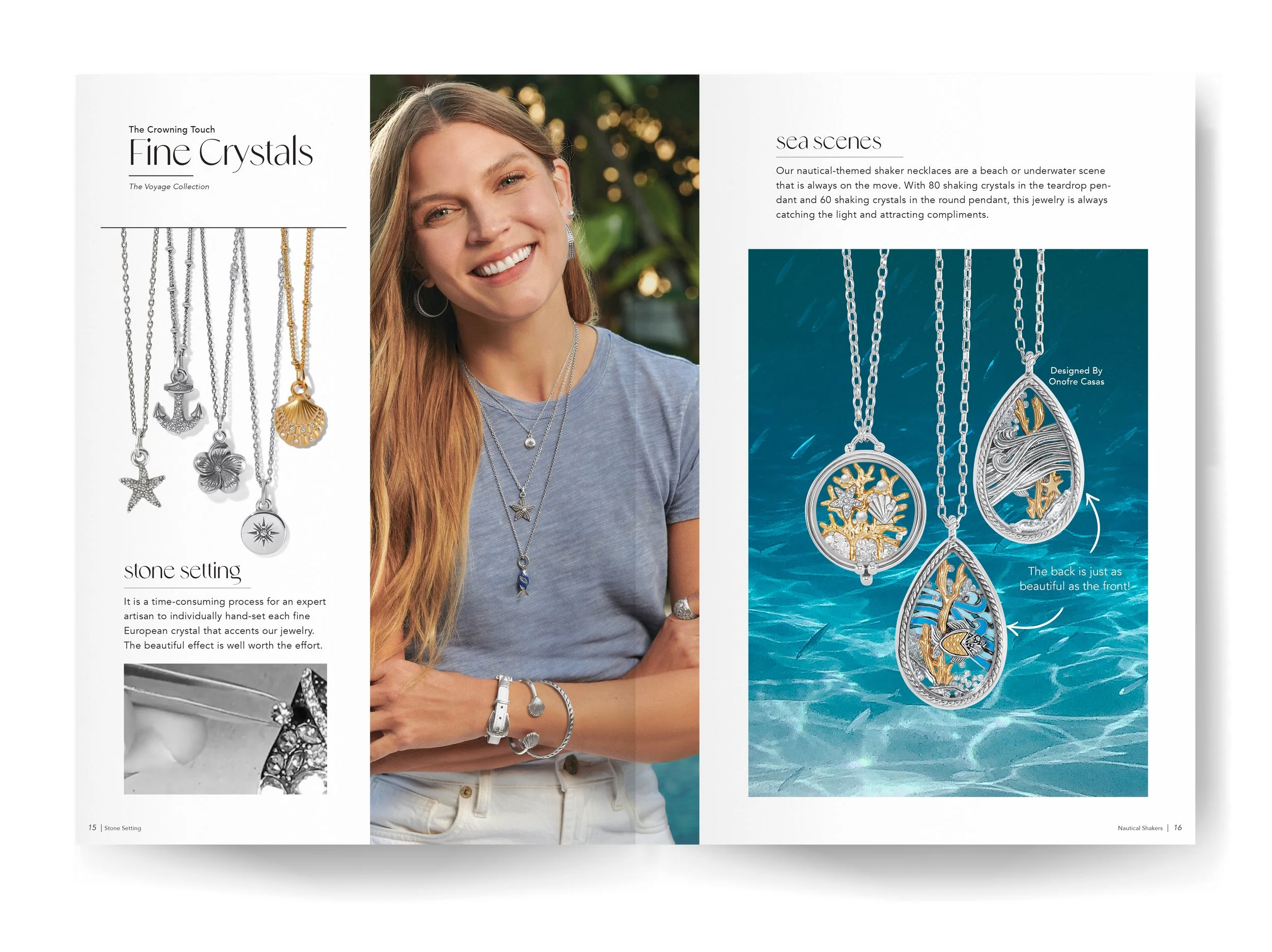 The Nautical Collections feature a captivating series of sea-inspired jewelry, handbags, and accessories designed by Brighton's in-house designer, Lisa Spayd-Sendre. This publication was distributed to customers across over 120 Brighton retail stores to provide insights into the inspiration, creative process, and unique story behind each piece.